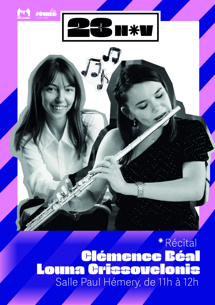 Ancienne élève de l’école de musique de Phalempin, Clémence Béal, élève au Conservatoire national supérieur de musique et de danse de Paris, a naturellement répondu présent à la sollicitation des directeurs Jean-Luc Petitprez et Jean-Luc Bray pour venir livrer un concert à la salle Paul-Hémery. Dirigé par elle à la flûte et par Louna Crissovelonis, du Conservatoire national supérieur de musique et de danse de Lyon, au piano, ce récital de haut vol sera programmé autour de Fauré, Chaminade, Schumann,