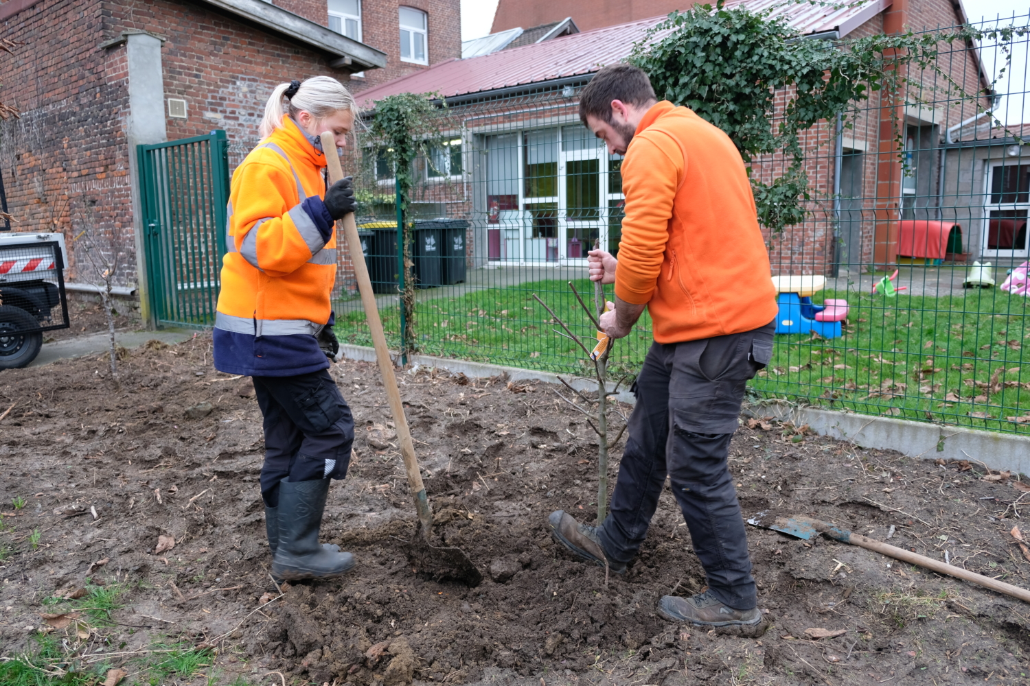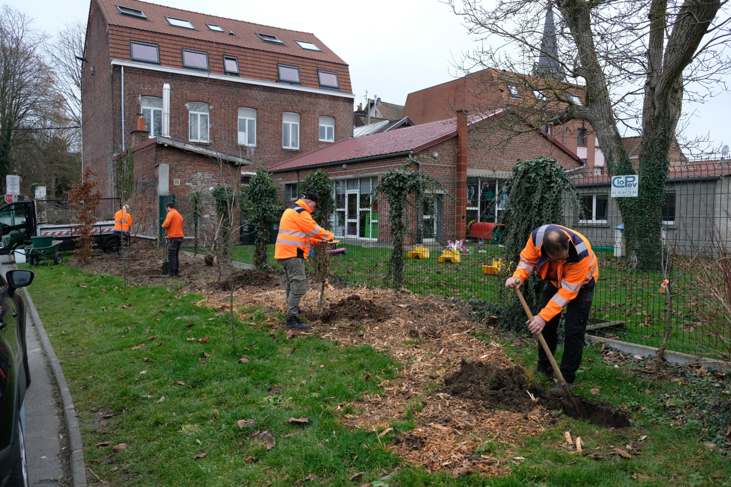 Mi-décembre, le service espaces verts de Phalempin s’est appliqué à planter des arbres fruitiers allée du Petit-Pont et entre l’allée Auguste Renoir et l’allée Sarah Bernhardt. « Ils remplacent des arbustes classiques qui avaient au moins 30 ans, détaille Yann Deloffre, responsable du service. Plus rien ne fleurissait. On a coupé à ras et on est passé sur place avec une rogneuse de souche, de sorte à ce que nous n’ayons pas à exporter de matière du site, et ça fait une bonne terre ! »