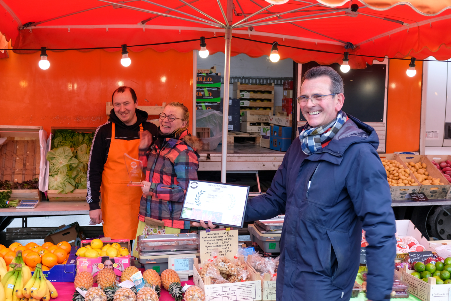Le vendredi 30 janvier restera une date marquante pour Jacques Heniart et son équipe. Le primeur de Vimy, fidèle au marché de Phalempin chaque vendredi après-midi, a reçu le premier prix « Primeur sur marché », décerné par le Comité Interfel Hauts-de-France. Une distinction qui salue l’engagement quotidien, l’expertise et la contribution à la valorisation des fruits et légumes auprès des consommateurs.